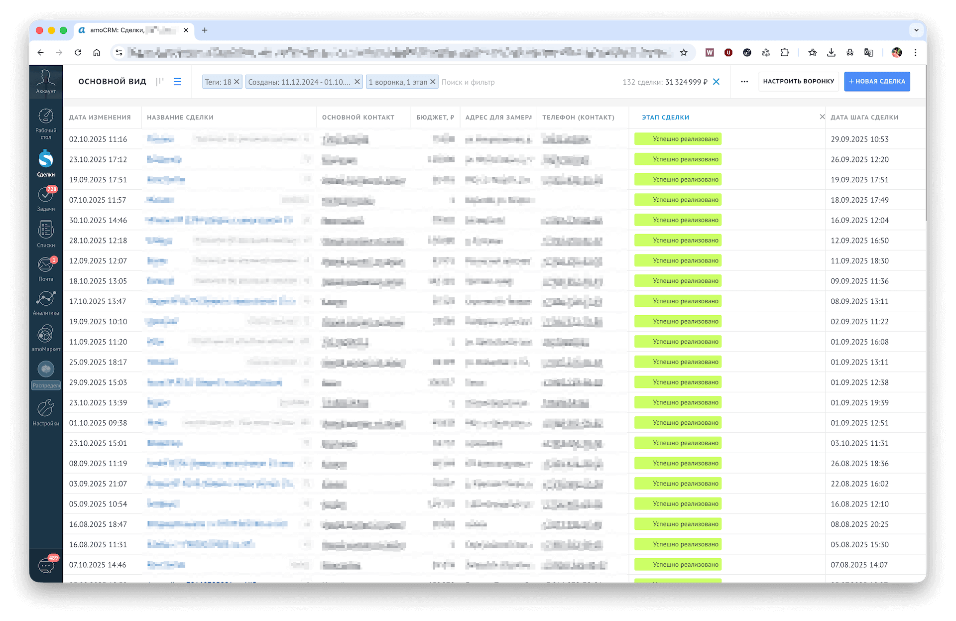 - 132 закрытые продажи (Средний чек ~237 000 рублей.)