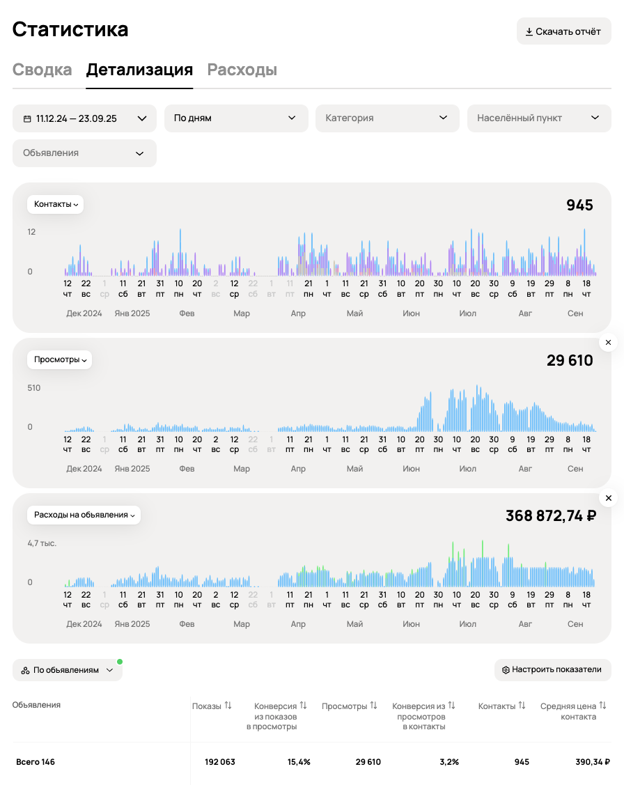 Я вижу, какое объявление принесло 5 продаж на 2 млн, а какое сожрало 50 тысяч и не дало ничего.