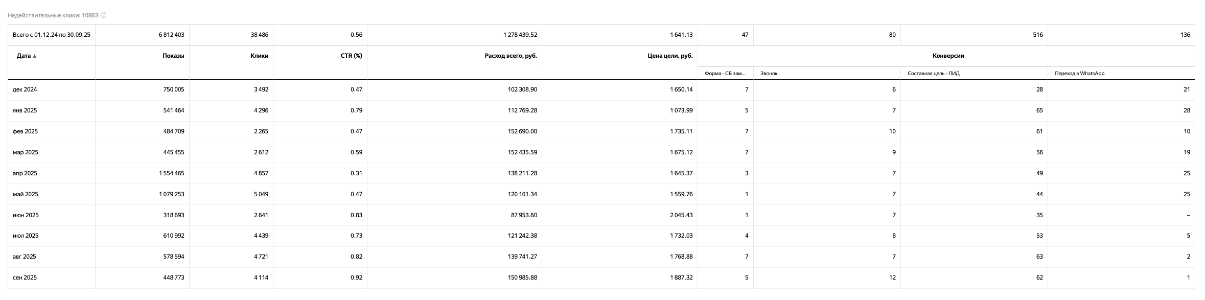 - Хаотичные тесты. Пробовали Яндекс, ВК, разные форматы — бюджет улетал, а системного результата не было.